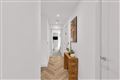 Herringbone oak flooring, guest bathroom and storage room off.
