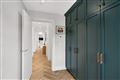 Herringbone oak flooring, bespoke floor to ceiling storage units.