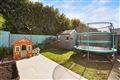 This low-maintenance garden features a mix of lawn and patio, offering a practical outdoor space. It is enclosed by a timber-framed fence with concrete posts and includes a timber framed garden shed for storage. Mature shrubs and plants in the flower beds add a touch of greenery, making it an easy-to-maintain and inviting space.