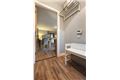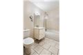 Tiled flooring, WC, part tiled bath with glazed shower door, mains operated telephone shower, pedestal wash hand basin, chrome heated towel rail, extractor fan.