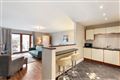 Laminated wood flooring, gas inset fire with solid wood mantle, black polished granite inset and hearth, double doors to private decking area overlooking off street parking.