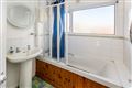 Tiled flooring, bath unit with glazed folding shower door, ‘Mira Elite’ electric shower, pedestal wash hand basin, WC, chrome towel rail.