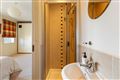 Tiled flooring, fully tiled shower cubicle with mains power shower and telephone hand shower, WC, wash hand basin, wall mirror, shaving light, recessed lighting, extractor fan.