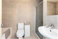 Tiled flooring, WC, wash hand basin, chrome heated towel rail, extractor fan.