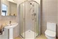 Fully tiled, WC, glazed shower cubical, pedestal wash hand basin with mirror cabinet above, chrome heated towel rail, extractor fan.